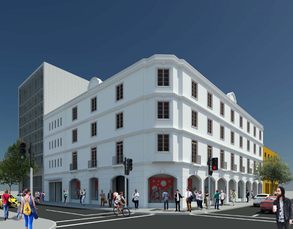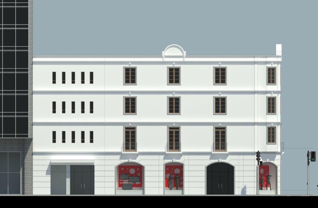 Edificio Bandera, nuestra primera obra en el casco fundacional de Santiago, Bandera Esquina santo Domingo a 1 cuadra de la plaza de armas, linda experiencia de poder mantener los cánones de diseño del sector respetando las líneas clásicas. Es un edificio de 4 pisos más subterráneo y terraza. Con comercio a nivel de calle y oficinas plantas libres en los pisos superiores.