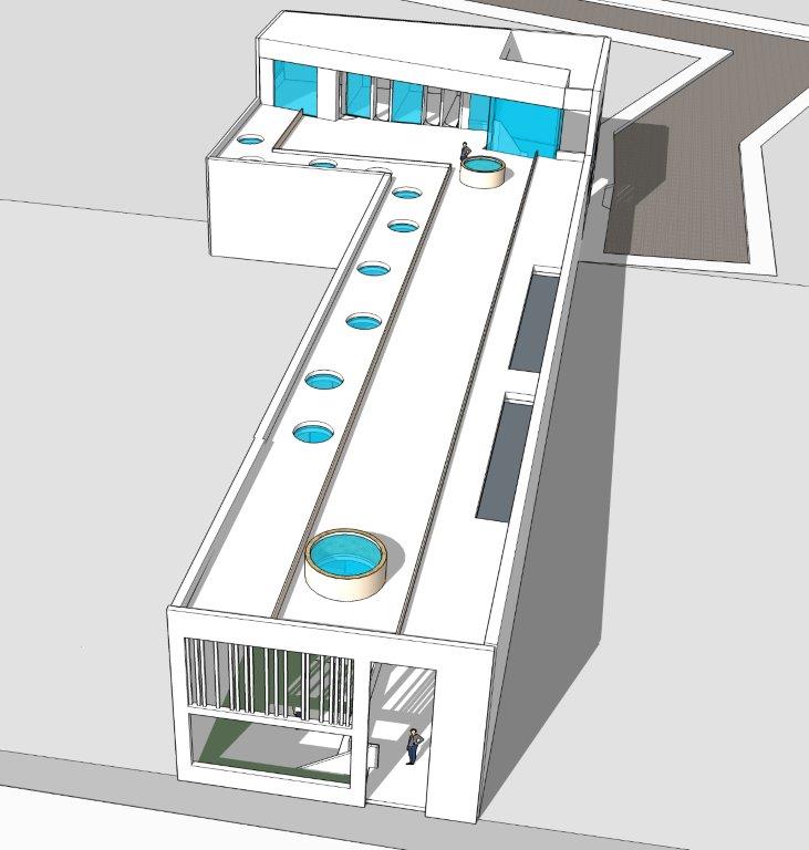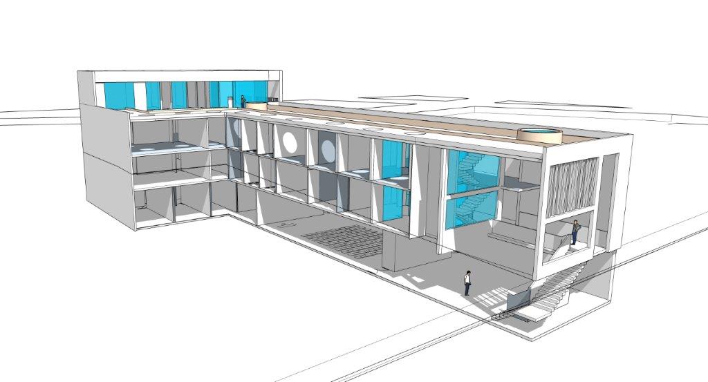 Anteproyecto aprobado para el “Centro cultural de la Asociación Coreana en Chile”. El edificio se emplaza en la acera oriente de calle Rio de Janeiro y se extiende hasta la calle Regina Humeres. Se proyecta como un edificio compuesto por salas de uso múltiple, oficinas, salas de muestra, museo abierto y salón de presentaciones, de 4 pisos y subterráneo. Por su salida a 2 calles, se aprovecha esta situación para tener actividades relacionadas con ambas potenciando las actividades a la comunidad por calle rio de Janeiro y las actividades más privadas por Regina Humeres.