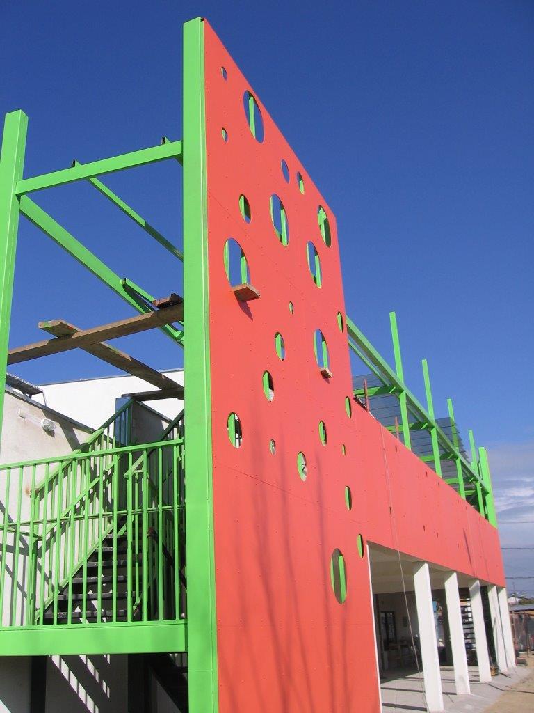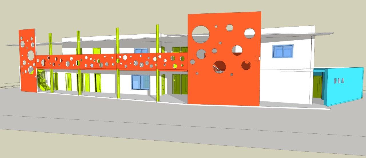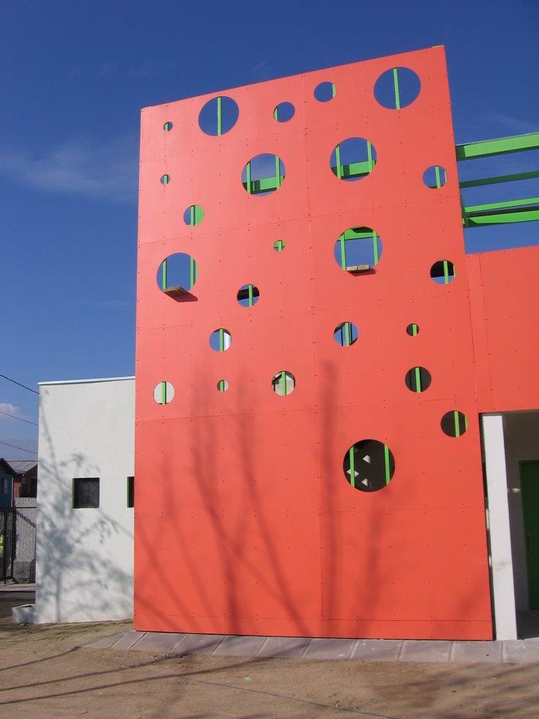 Jardín Infantil y sala Cuna Población 6 de Mayo, La Pintana, en el marco del Programa Quiero Mi Barrio, obra de 530 m2. Interesante desafío generar los espacios arquitectónicos necesarios para que los niños desarrollen sus actividades proporcionándoles un ambiente que los motive, los estimule, y desarrolle sus sentidos a través de la luz, las texturas, los espacios, etc. Se planteó Educar los sentidos del niño, enseñar a escuchar, a mirar, a sentir, etc. a través de la arquitectura, intentando complementar las falencias de la sus educación.