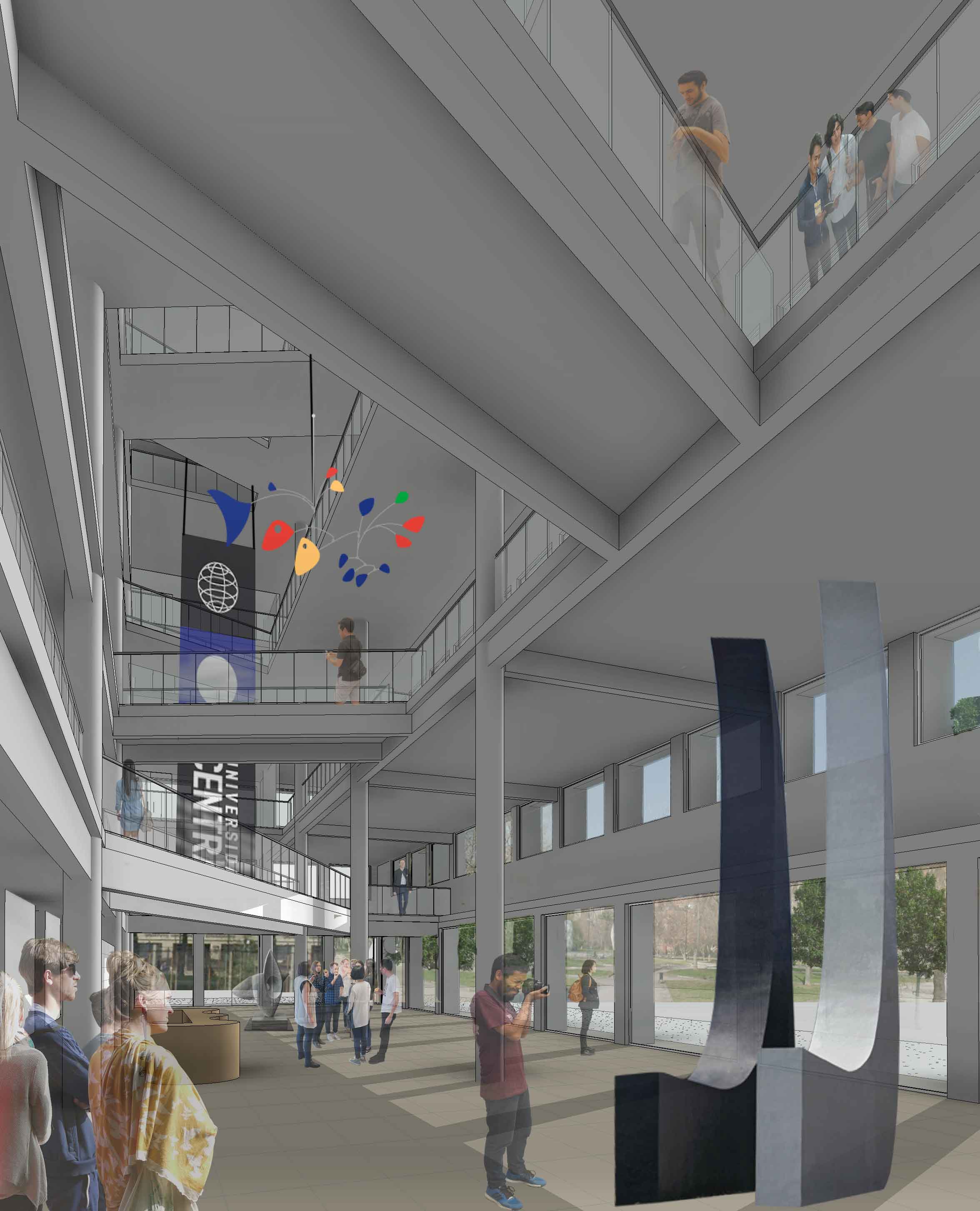 Es por esto, que el edificio que albergará la Casa Central de la Universidad se plantea a partir de tres elementos espaciales concretos y diversos entre sí que, sin embargo, conviven plenamente y se retroalimentan.