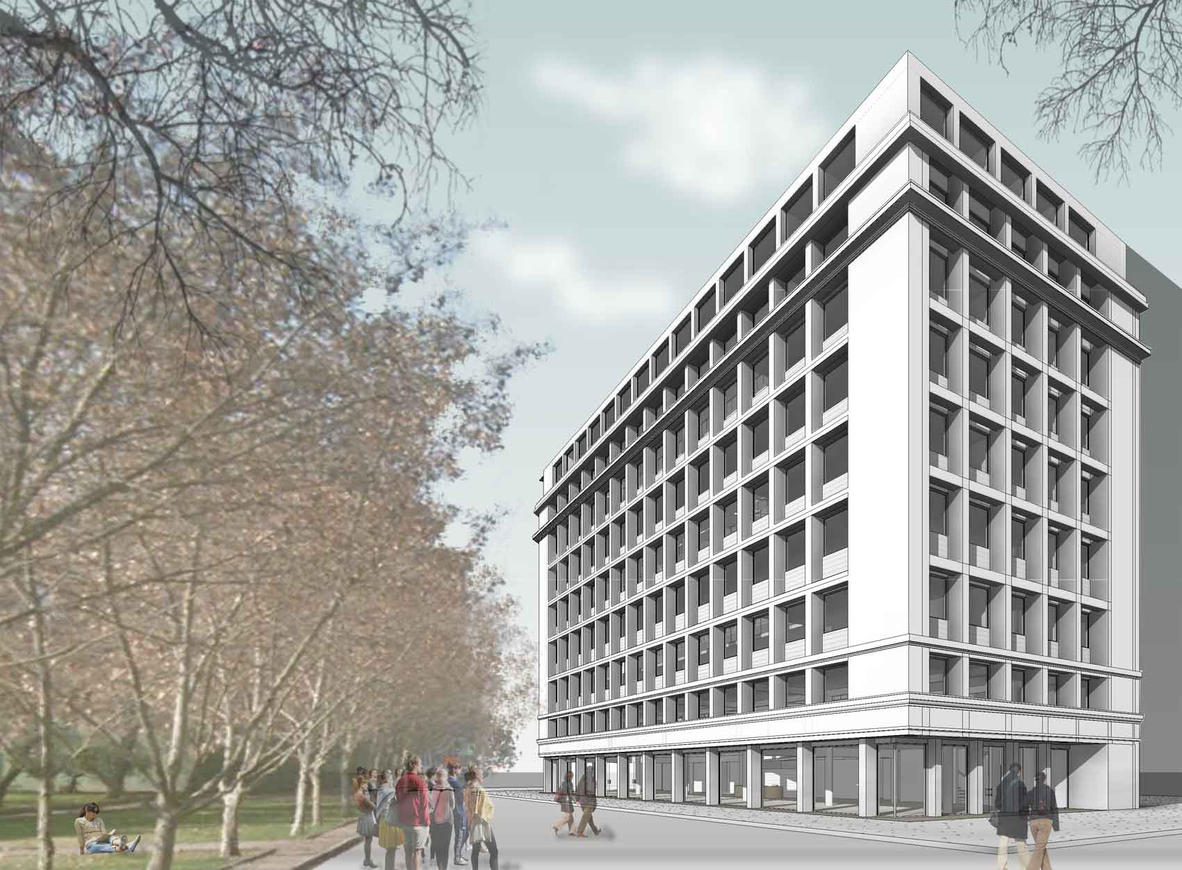 Anteproyecto casa central de la Universidad Central, 7500 m2, Paseo Bulnes/Parque Almagro.