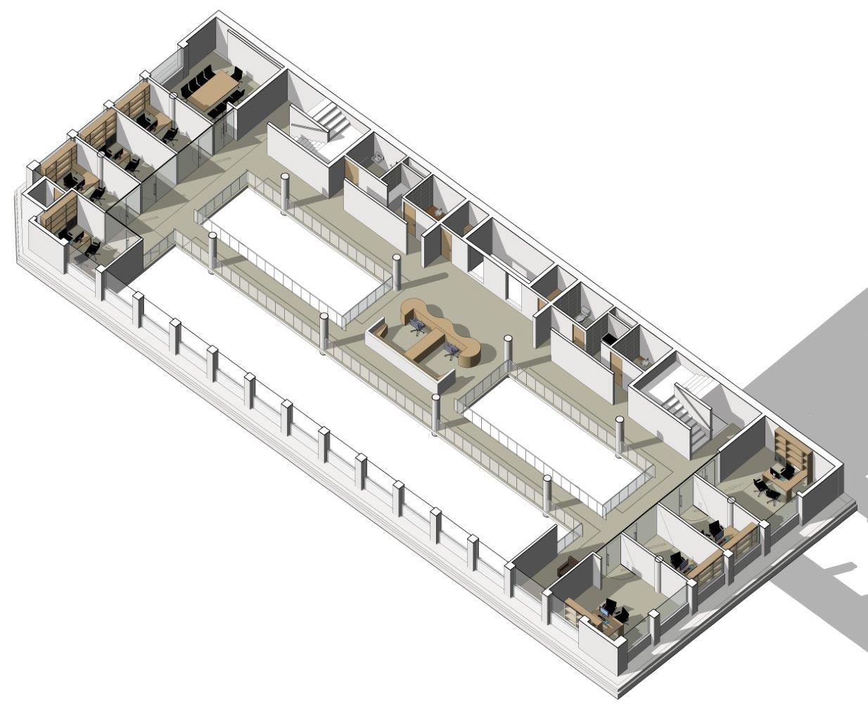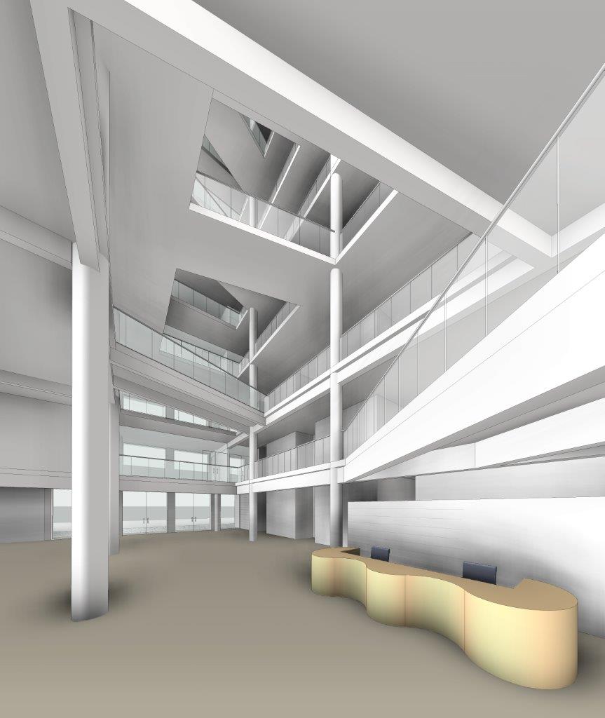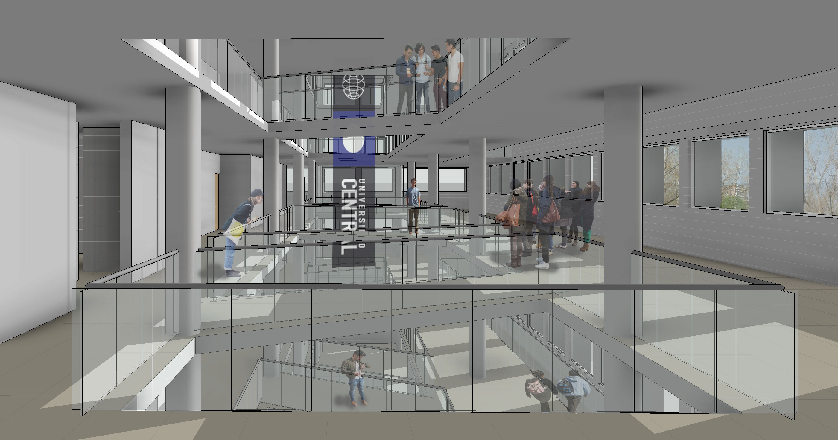 VACÍO: El vacío central del edificio es el punto neurálgico del proyecto, el lugar del encuentro y del traspaso, la instancia que permite entender la totalidad del espacio y conectar todos los programas que dan vida a la arquitectura interior de esta Casa Central. Este espacio recoge los diferentes flujos y las más diversas dinámicas que generan sus usos, siendo a la vez tanto separador como conector de las tensiones internas del edificio.