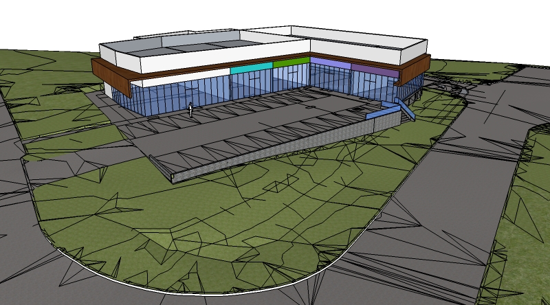 Proyecto centro comercial "Strip Center Andalue", Comuna de San Pedro de la Paz, VIII Región. Un edificio compuesto por 5 locales comerciales en total, un piso, que enfrentan placa de estacionamientos.