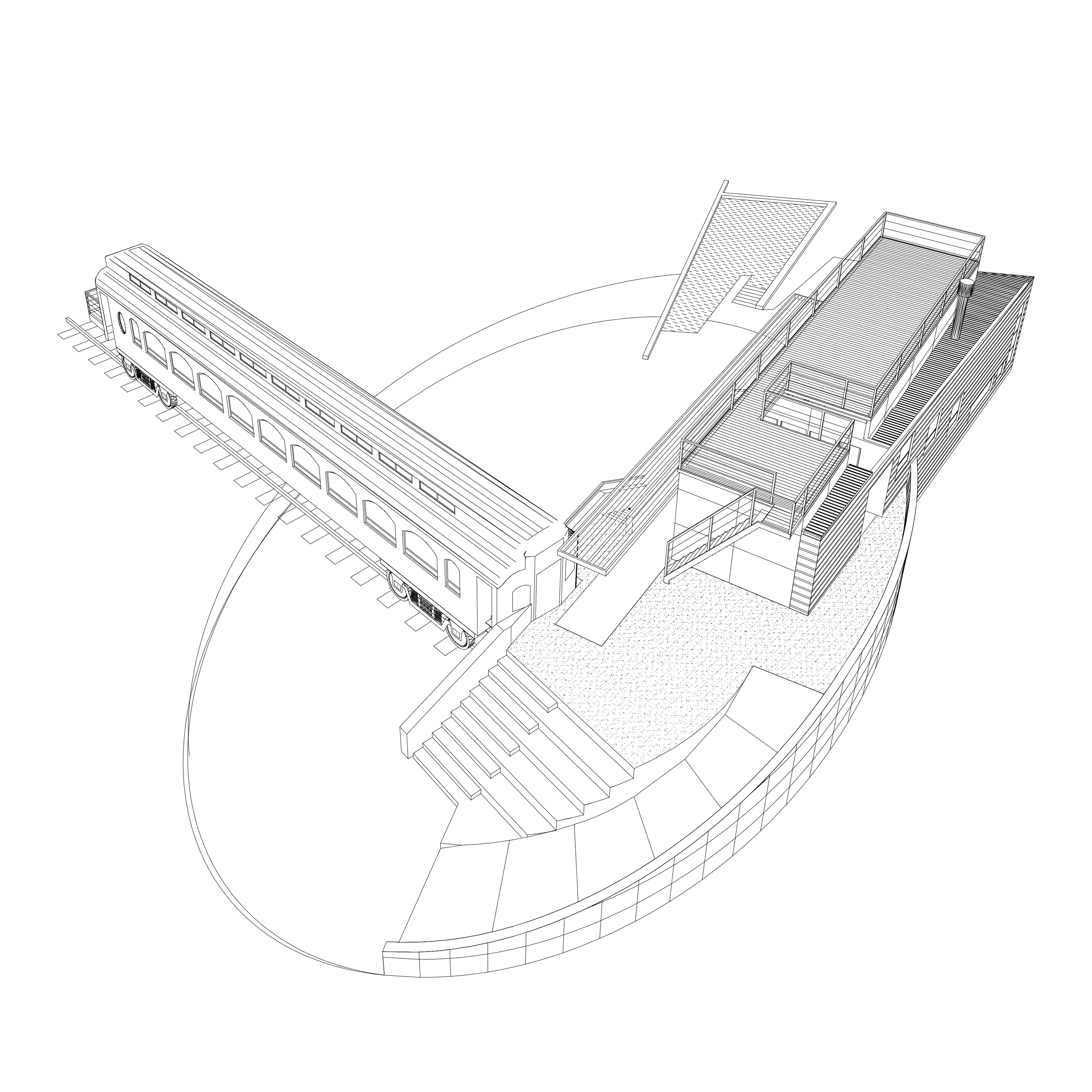 El proyecto, emplazado en una parcela de agrado, cercana al Cerro Chena, se desarrolla a partir del reciclaje de un vagón, patrimonio ferroviario (Linke hofmann de 1923), y un volumen anexo que alberga el equipamiento y programa de apoyo, que por lo reducido del vagón, no pueden ser incorporados.